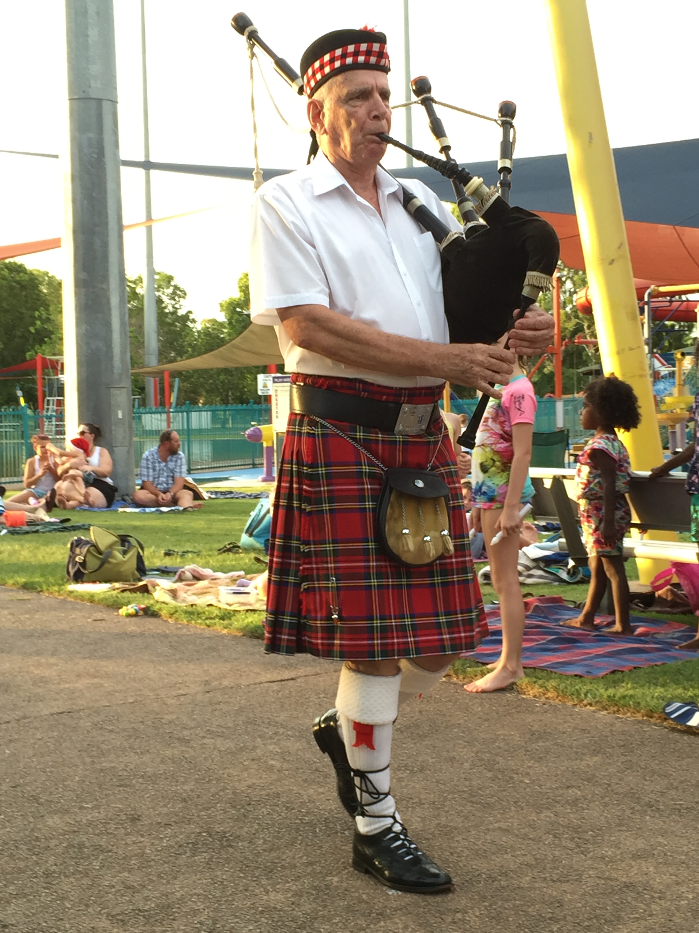One lone piper on the bagpipes.