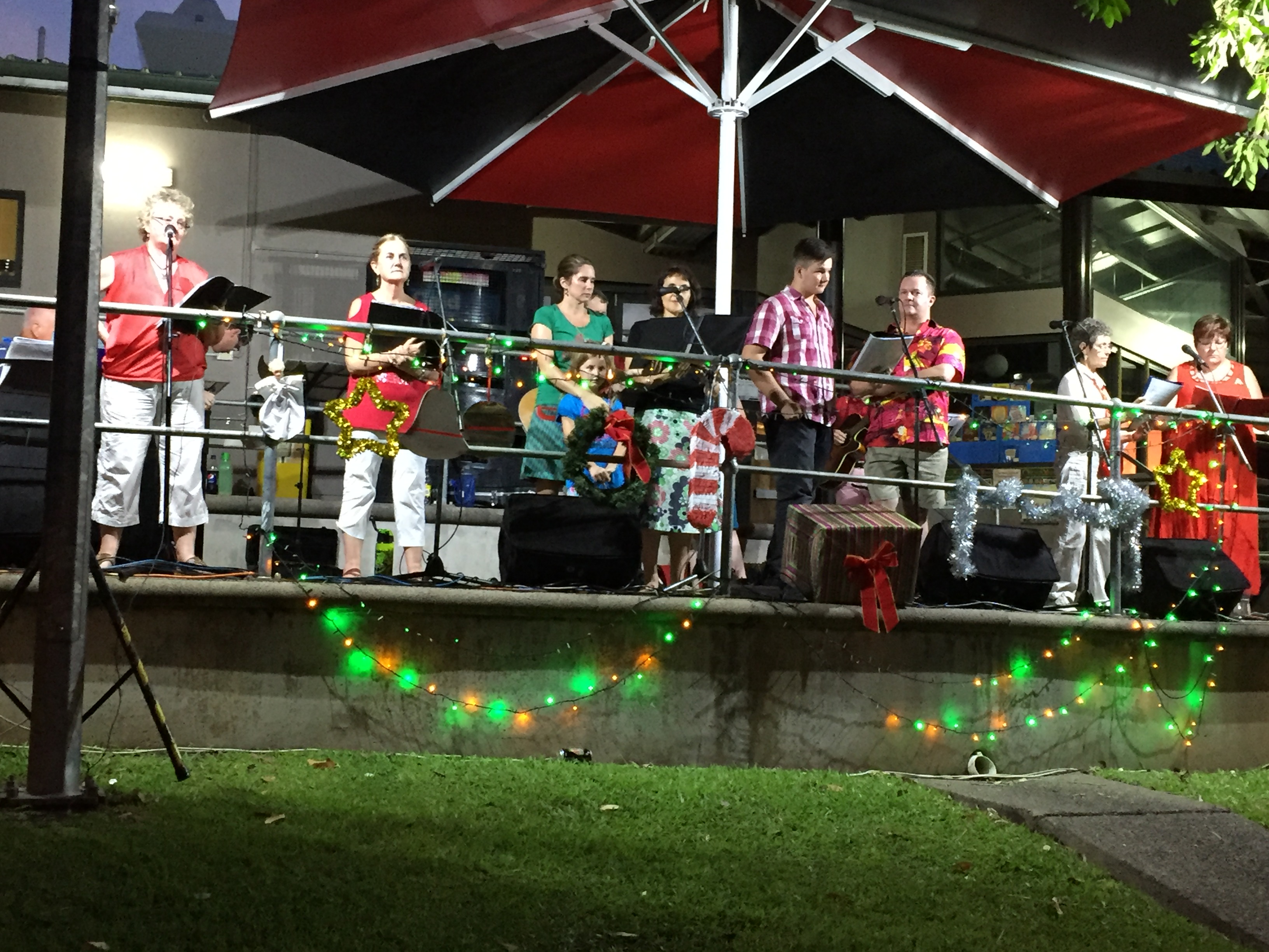 Churches of Darwin and YMCA joined forces to present the carols at the Water Park.
