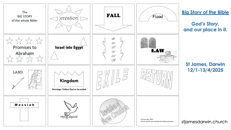 During June – September 2020 we are spending 14 weeks exploring God’s Big Story of the Bible.